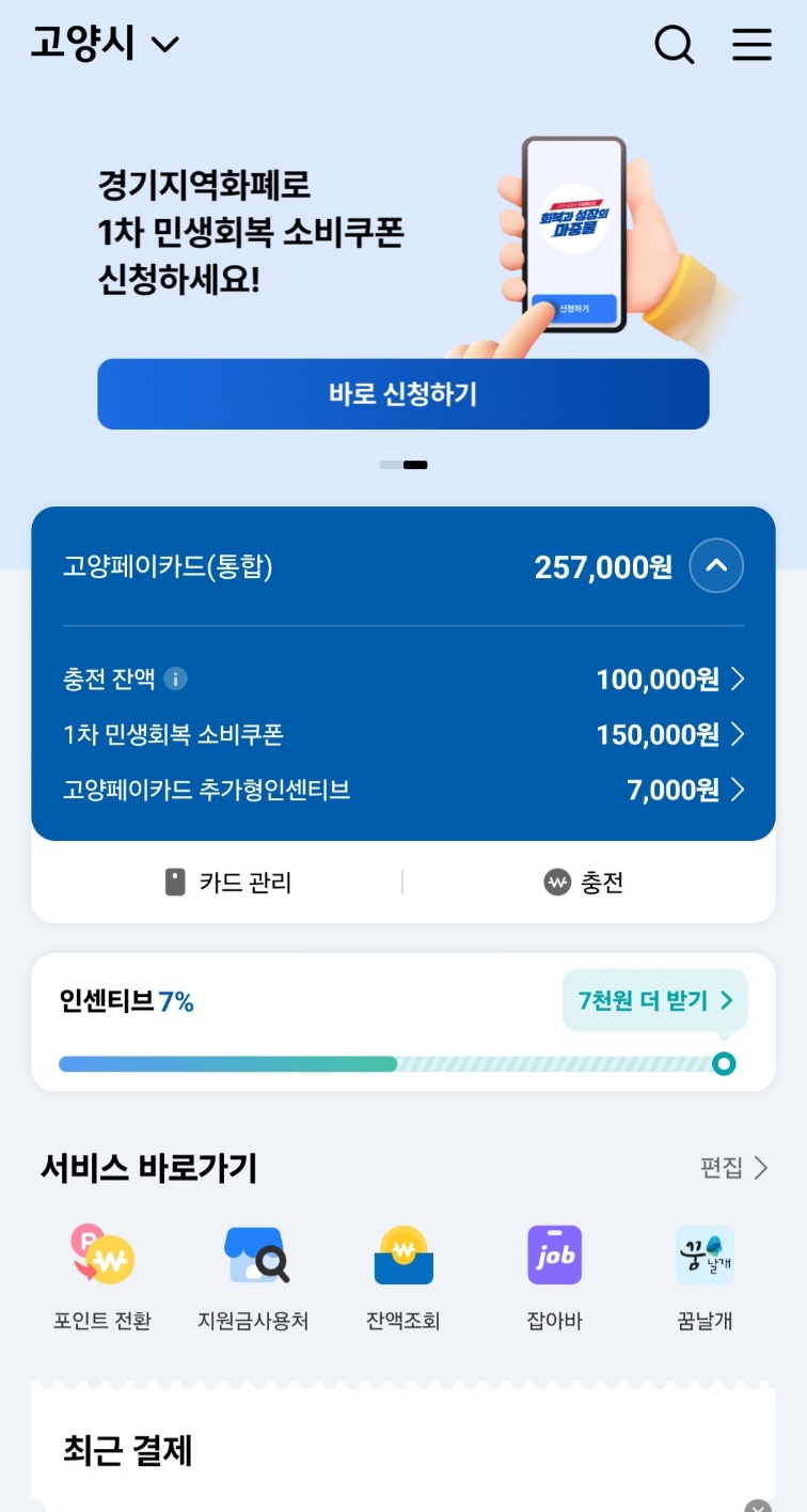 경기지역화폐 앱 (모바일 및 실물카드 관리 가능) |