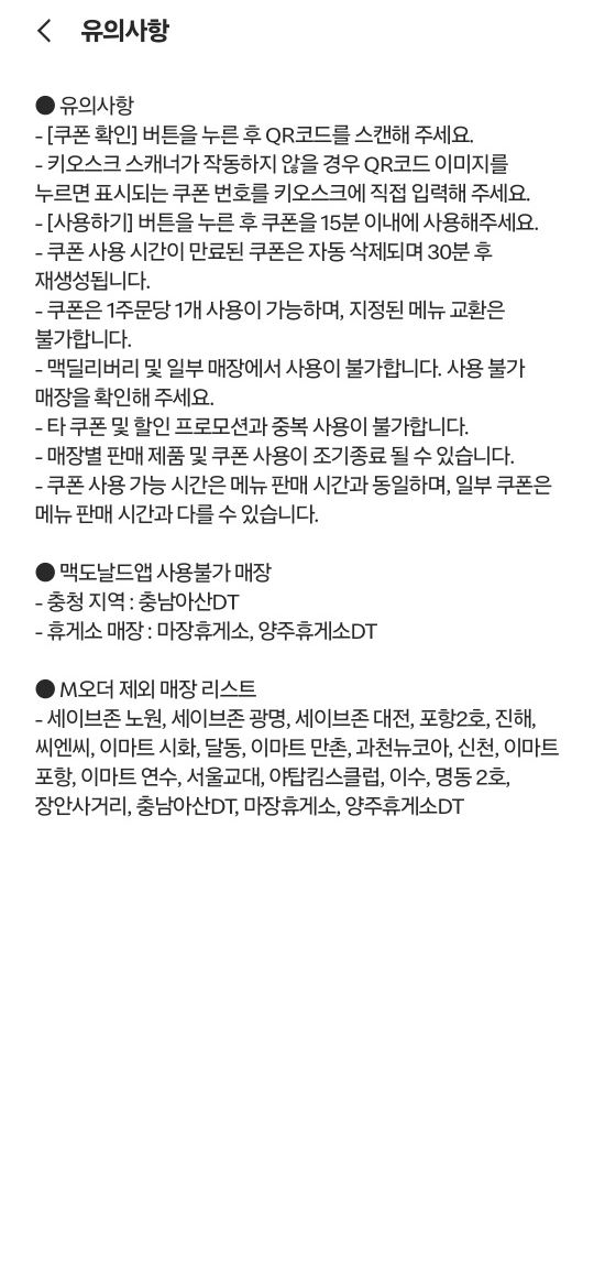 → 단품 할인 외에도 세트·와퍼 프로모션이 자주 열림. - 맥도날드 : 쿠폰 종류가 다양하고 할인 폭이 큼.